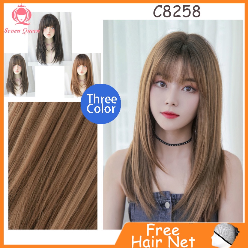 Explosive Models Seven Queen Ladies Wig Fashion Long Hair Realistic Natural Long Straight Hair Air Bangs Fluffy Wig Lazada Ph
