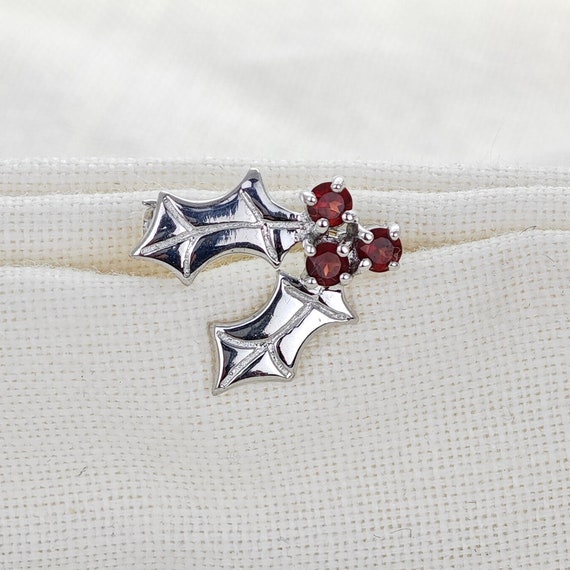 Holly Garnet Brooch Sterling Silver Small Natural Red Stones Christmas Gift Etsy Uk